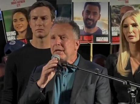 ABD Ortadoğu Özel Temsilcisi Witkoff, arkasında Trump’ın kızı Ivanka ve damadı Jared ile Tel Aviv’de. Konuşmasında “Netanyahu” dediği anda kalabalık uzun uzun yuhalıyor ve ıslıklandı. Witkoff, konuşmasına bir türlü devam edemedi.
