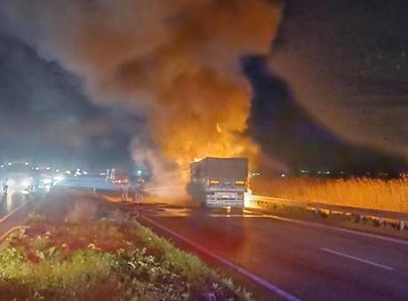 Olay, saat gece yarısı Uluabat Mahallesi’nde meydana geldi. Karacabey’den Bursa istikameti giden İbrahim Ethem D. İdaresindeki buğday yüklü dorsenin motor kısmında henüz belirlenemeyen nedenle yangın çıktı. Yangını fark eden sürücü TIR emniyet şeridinde durdurdu. İbrahim Ethem D., 112 Acil Çağrı Merkezine haber verirken, alevler kısa sürede tüm TIR’ı sardı. İhbar üzerine olay yerine polis, itfaiye ve sağlık ekipleri sevk edildi. Güvenlik önlemi alan trafik ekipleri, çevredeki vatandaşları uzaklaştırıp yolu ulaşıma kapattı. Yangın ise itfaiye görevlilerinin müdahalesiyle söndürüldü.