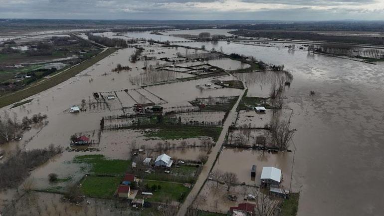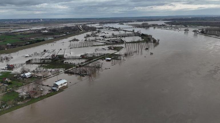 Edirne'de Tunca'da kırmızı, Meriç'te turuncu alarm sürerken, nehirlerde su seviyesi artmaya devam ediyor. Taşkın nedeniyle tarım arazileri ve yerleşim yerlerine yakın alanlar sular altında kaldı.