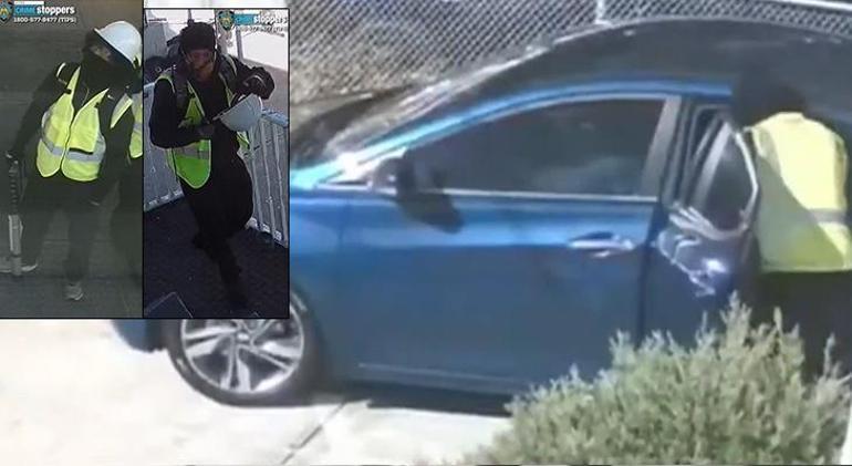Olay, çevredeki güvenlik kameralarına saniye saniye yansıdı. Görüntülerde hırsızlardan birinin fosforlu sarı inşaat yeleği, beyaz baret ve gözlük; diğerinin ise turuncu yelek, beyaz baret ve yüz maskesi taktığı görüldü. Her iki soyguncunun da sırt çantalarıyla eve girdiği, kaçış aracında bekleyen üçüncü kişinin ise beyaz kapüşonlu kazak ve siyah pantolon giydiği tespit edildi.