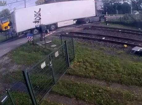Hollanda'nın Gelderland ilindeki Meteren köyünde armut yüklü bir tır, dönüş yapmaya çalıştığı sırada hemzemin geçitte mahsur kaldı. Bu sırada hızla gelen yolcu treni, tıra çarptı. Tırdaki armutlar yola saçılırken, tır şoförü ve trendeki 4 kişi yaralandı. Kameraya yansıyan görüntülerde, hemzemin geçitteki tırın dönüş yapamadığı, geri gelerek tekrar hemzemin geçitten geçmeye çalıştığı ve bu sırada yolcu treninin tırı biçtiği görüldü. Bir görgü tanığının ifadesine göre sürücünün dönüş yapacağı virajın çok dar olduğu, bu nedenle hemzemin geçitte kaldığı belirtildi.