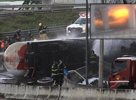 Meksika'nın başkenti Meksika City'de yer alan İztapalapa bölgesindeki bir otoyolda öğle saatlerinde LPG tankeri devrildi.