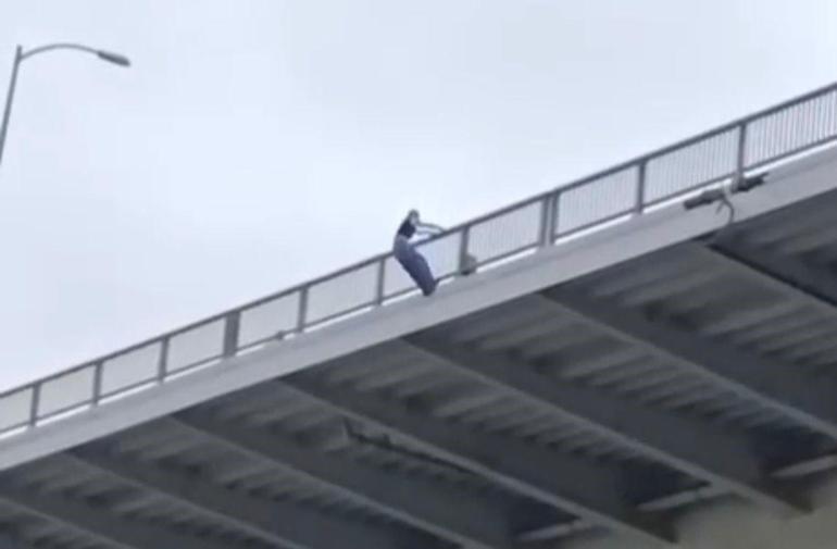 Sosyal medyada da paylaşılan görüntülerde, vatandaşların ikna etmeye çalıştığı esnada Karaaslan'ın kendini aniden aşağıya bıraktığı görüldü.