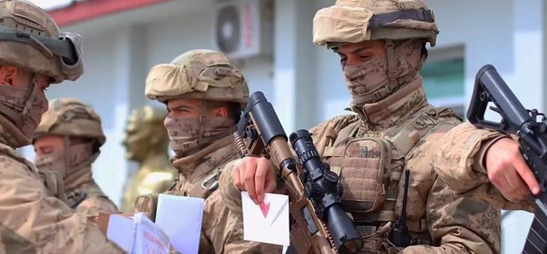 Kato Dağı eteklerinde zorlu şartlarda görev yapan Mehmetçik, miniklerin içten mesajlarını büyük bir ilgiyle okudu.