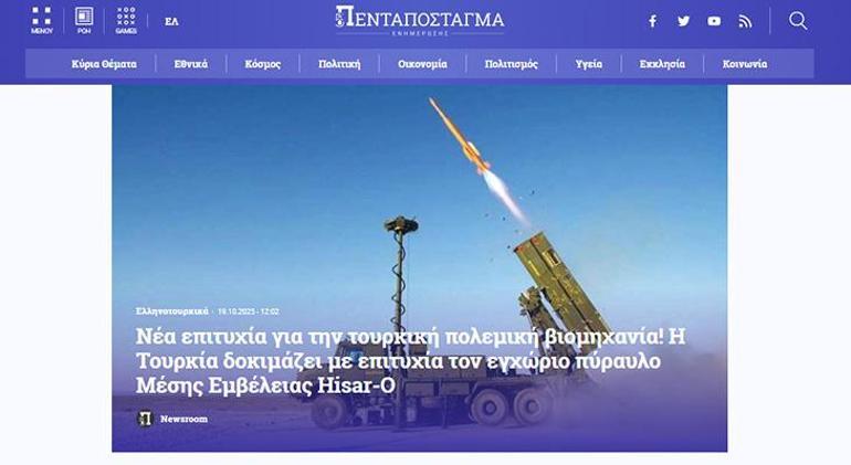 MİLLİYET.COM.TR / Yunanistan’ın önde gelen gazetelerinden Pentapostagma, Türkiye’nin son yıllarda savunma sanayinde kaydettiği büyük ilerlemeyi mercek altına aldı.