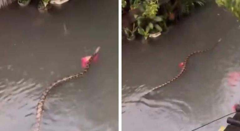 SON DAKİKA HABERLER: Turizm cennetinde korku dolu anlar! Sel sularının arasında devasa yılan görüntülendi