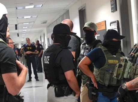 Gözaltına alma işlemlerinin toplam 22 federal ve yerel kolluk kuvvetlerinin işbirliğinde yapıldığı bilgisine yer verilen grafikte, çalışmaların 1871'i kolluk kuvvetleri, 1629'u Ulusal Muhafız Birliğinden olmak üzere 3 bin 500 personelle yürütüldüğü kaydedildi.